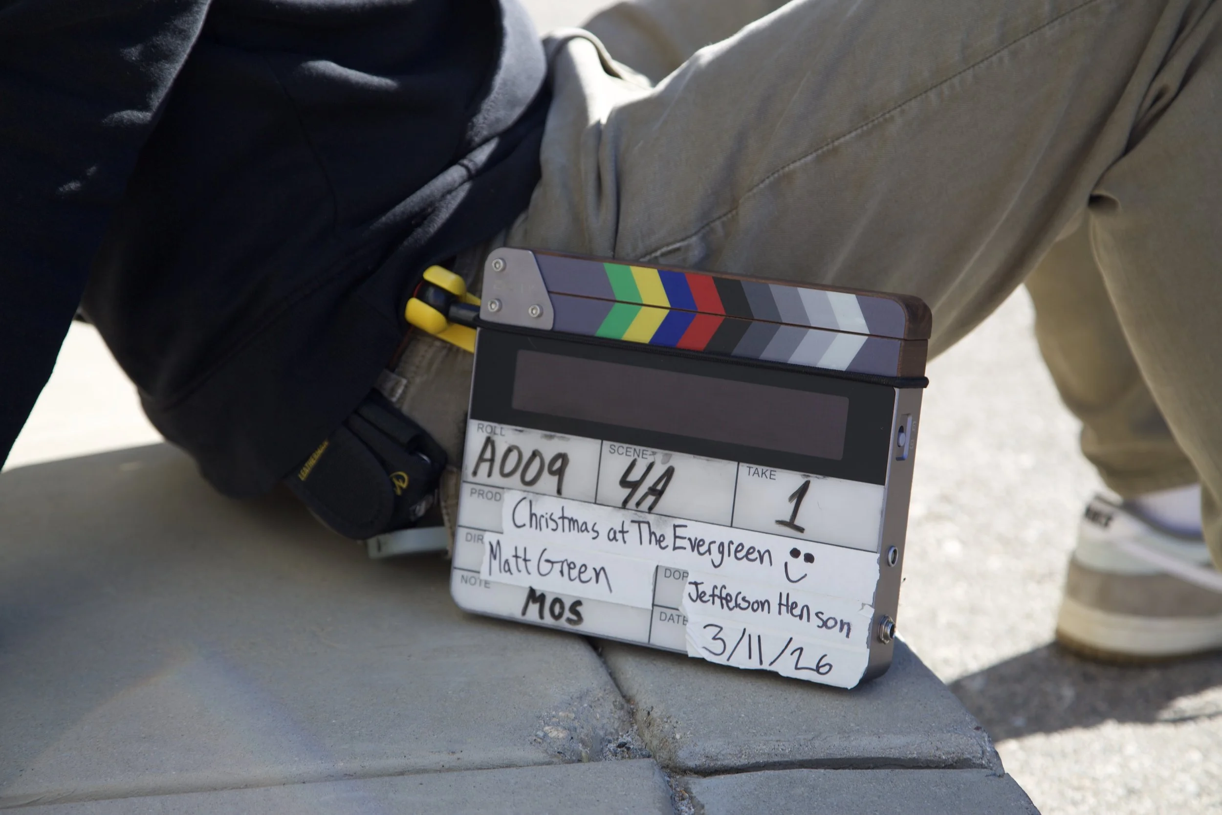 Jack Bleeker’s “slate,” used to mark and label footage of each scene.